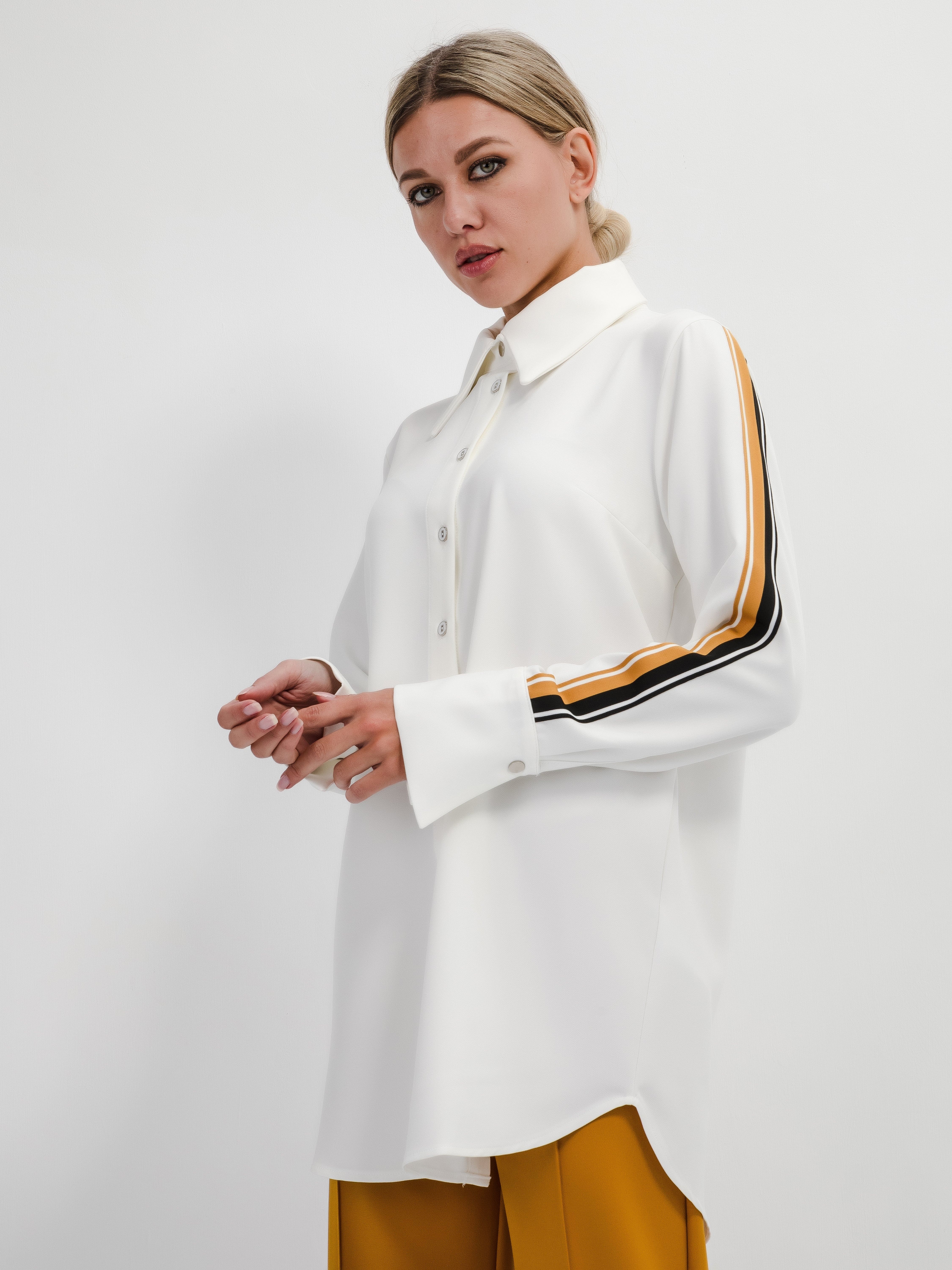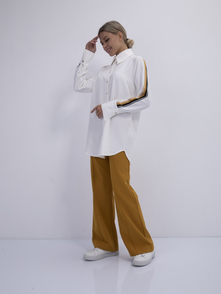 Kumas: Dokuma. Gomlek verev mansetli citcitli yaka. Uzun klasik citcitli manset kol. 1. sinif dokuma materyel. Yuksek bel pantolon boru paca utu cizgisinervurlu. Luks kalite kumas. Mukemmel uyum kalibi. Manken olculeri: 172 cm, 86 cm, 62 cm, 93 cm. Manken M beden giyiyor. Ürünü ters çevirerek yıkayınız.